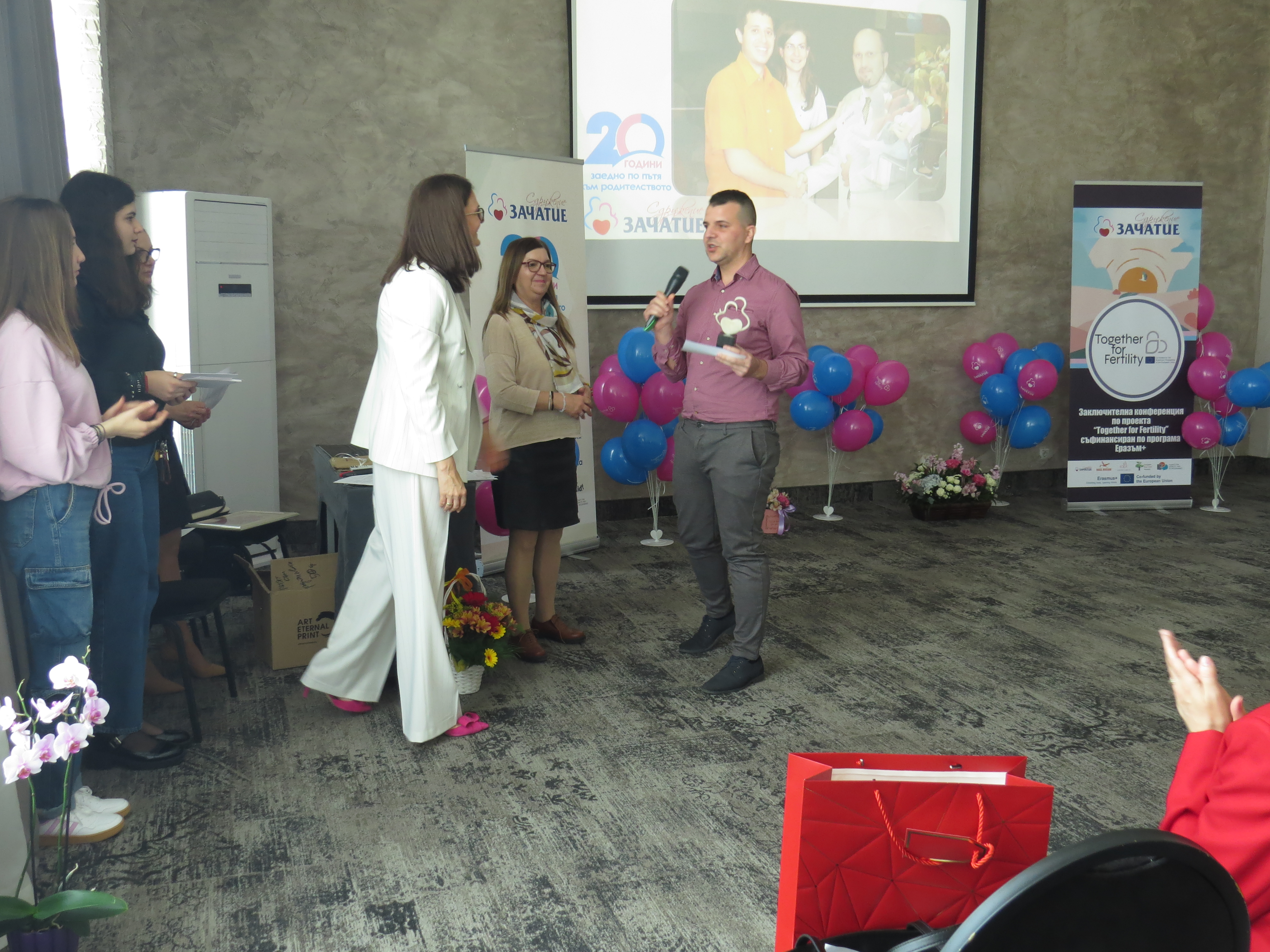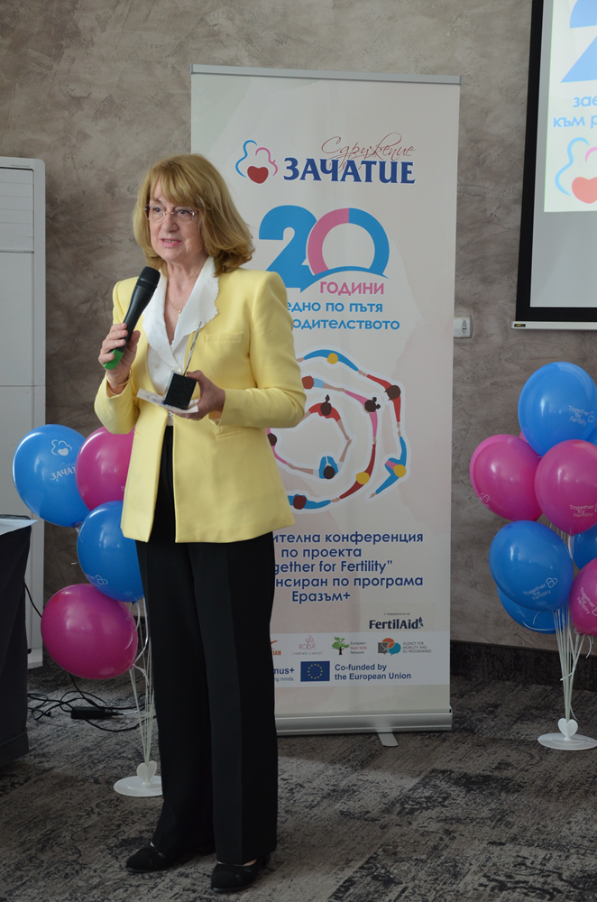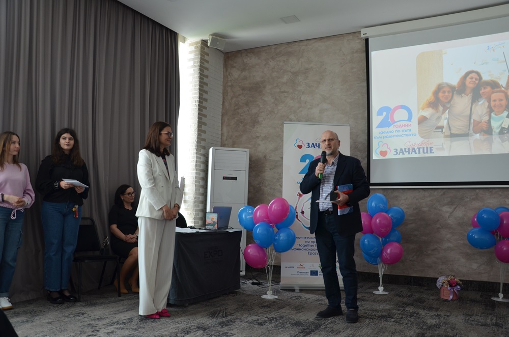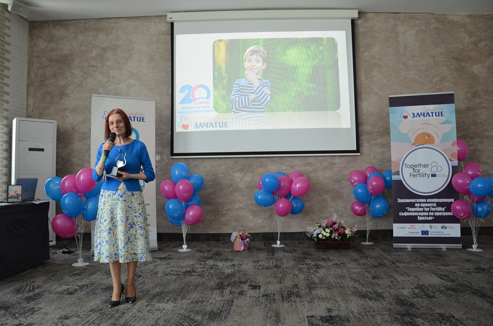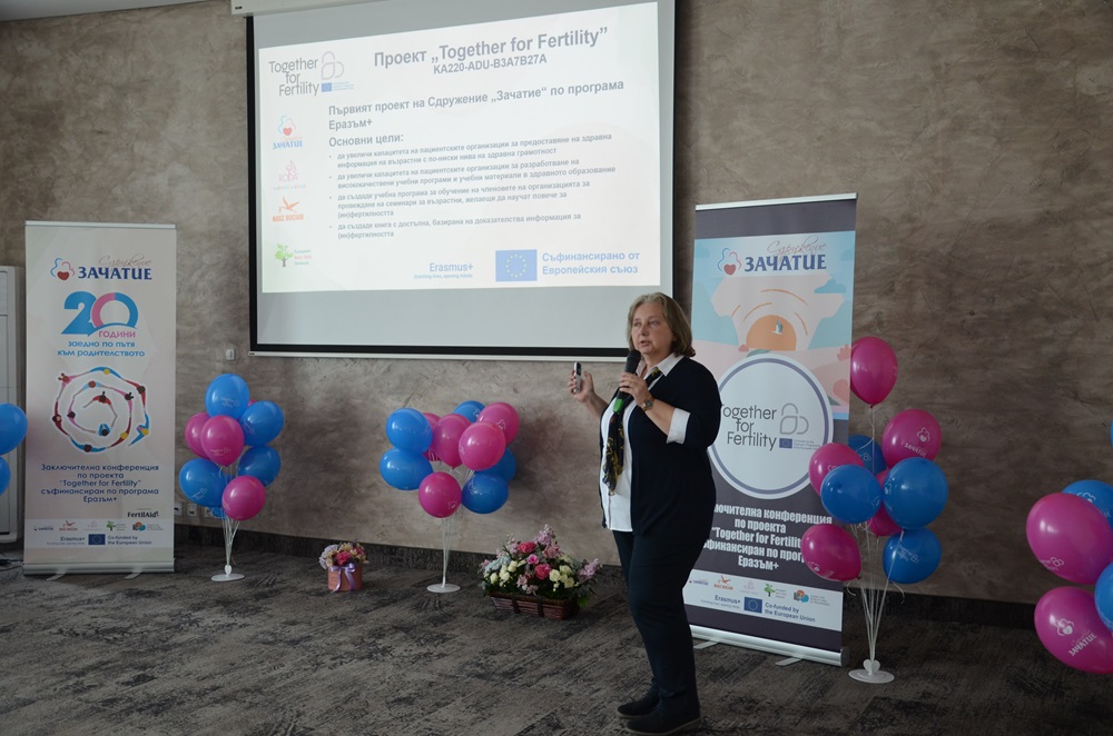 В рамките на събитието се проведе и заключителната конференция по проекта “Together for Fertility”, съфинансиран по програма Еразъм+ на ЕС, в който си партнираме със сдружение RODA от Хърватска, Nasz Bocian от Полша и Progress Consult от Унгария. Ирина Попова, зам. председател на сдружение “Зачатие” и зам. председател на Fertility Europe, представи пред аудиторията програмата Еразъм, същността на проекта и един от неговите най-значими резултати - книгата „Пътят към родителството: Твоят лесен пътеводител за фертилността“. Книгата обхваща на достъпен език всички теми по пътя към родителството за хората, срещащи проблеми със забременяването и техните близки. Книгата се разпространява безплатно и е достъпна онлайн на сайта на „Зачатие“.